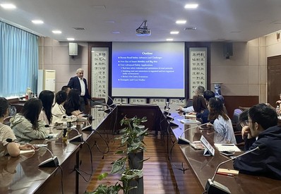 随后,公司师生听取了Tarek Sayed院士基于多源大数据进行交通安全与机动性研究的“Towards A Sustainably Safe Urban Network: The Role of Advanced Technologies and Big data”的线上线下相结合学术讲座,分享了近年其利用边缘摄像头等新技术获取数据,通过数据分析和模型优化来提高道路安全性和效率,开展实时安全评价和优化、极端值模型应用的动态,Tarek Sayed院士强调面对AI技术大爆发的新时代,未来需尝试新方法,以便更好地评估现状并进行预测,并耐心解答了现场与线上师生们的提问。